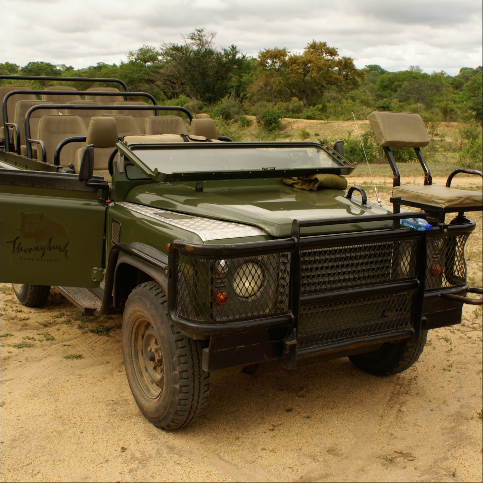 A aventura de procurar os big five é unica. A bordo dos jipes estão o piloto e um guia sentado na frente do carro e a proximidade com certos animais chega a assustar!
