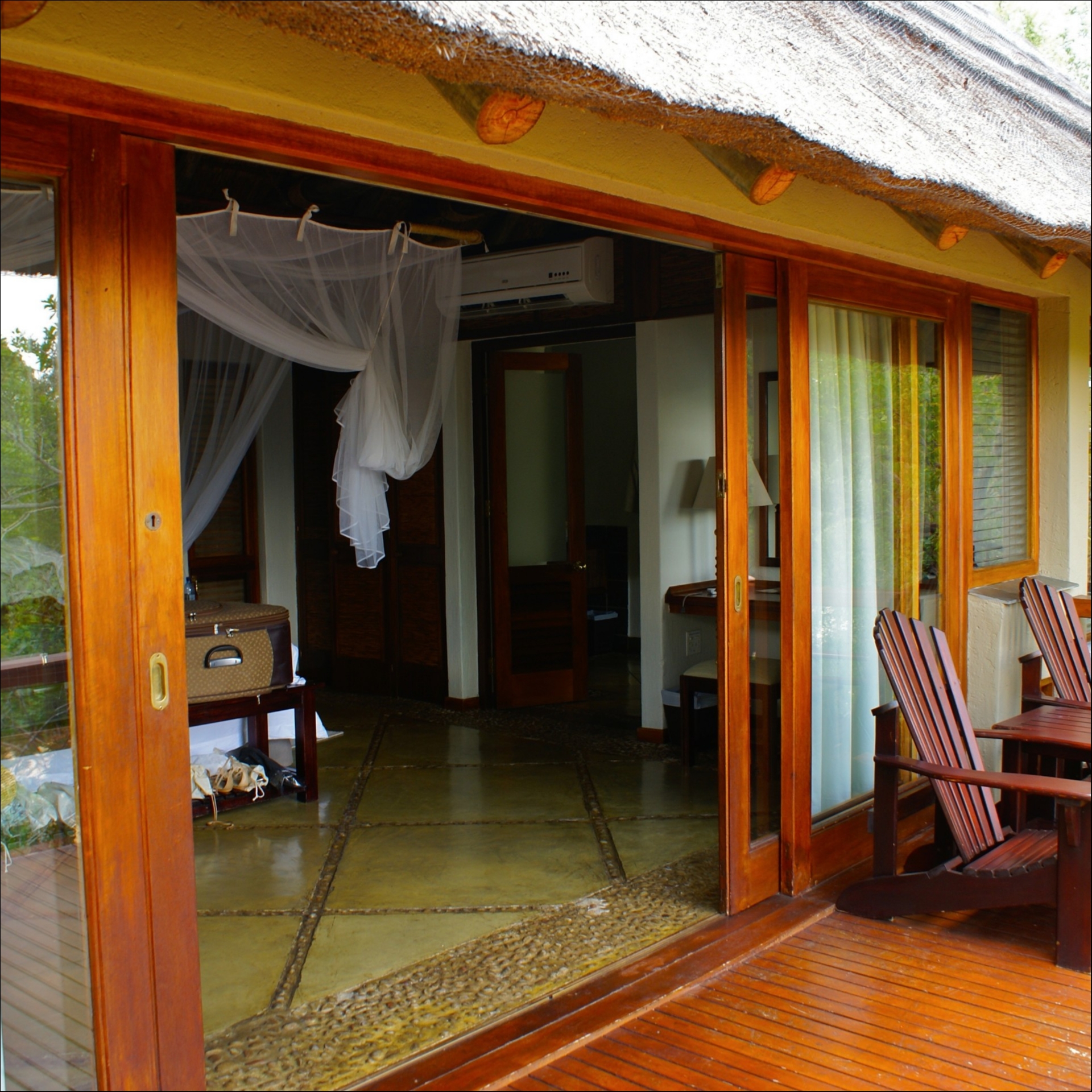 O interessante do Parque é que os animais estão livres, e os visitantes é que são controlados! No hotel que me hospedei, cada quarto era um cabana e não era permitido andar sem um guia ao lado. Questão de segurança, ja que você poderia encontrar no trajeto um leopardo, uma cobra...