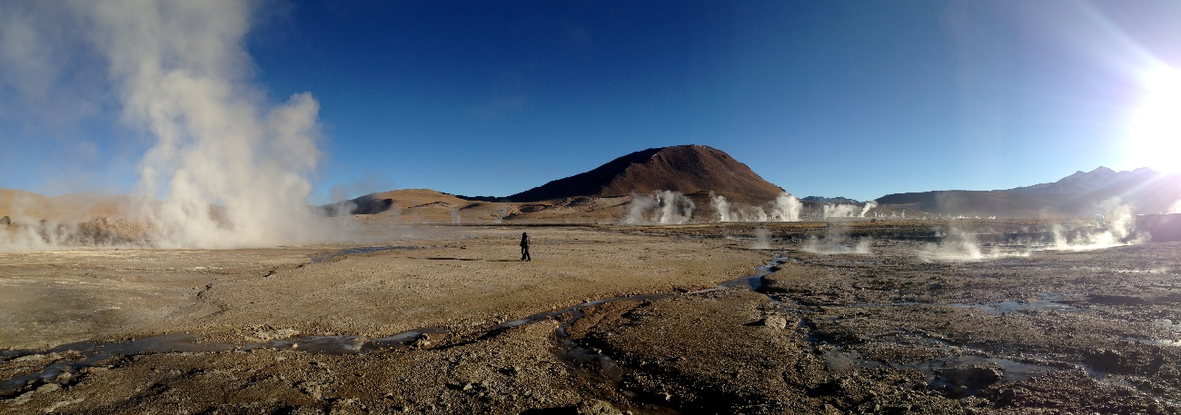 No dia seguinte fomos para os Geyseres del Ttio (todos os passeios eram feitos em vans adaptadas para os terrenos e o motorista era o próprio guia turístico, ele buscava e deixava todos em seus respectivos hotéis). Chegamos lá por volta das 6h da manhã, com uma sensação térmica de nada mais nada menos que -21ºC. Assim como todos os outros, este passeio foi fabuloso!