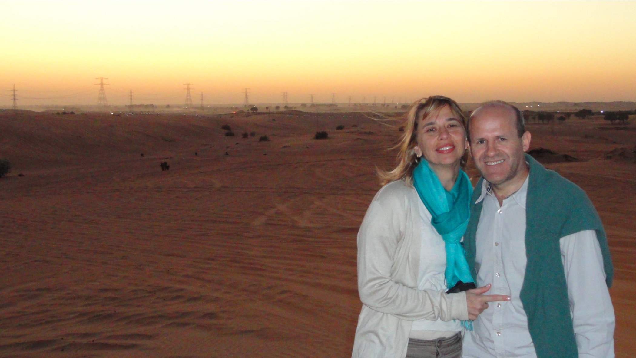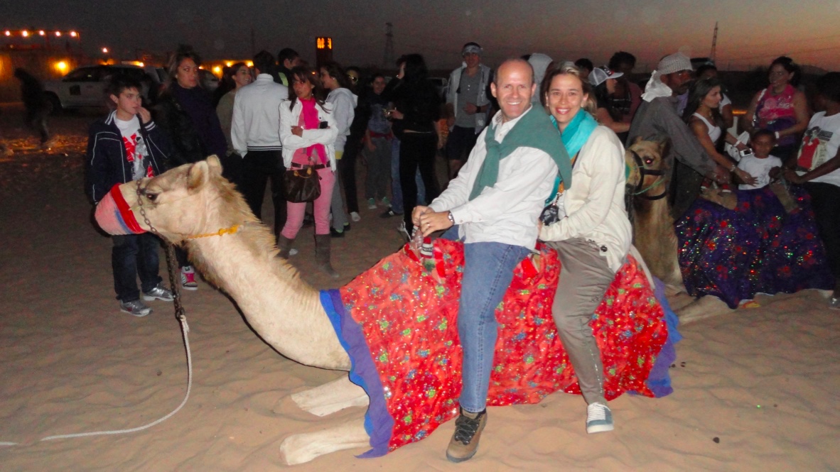 Meu marido Paulo e eu embarcamos em uma aventura em busca de experimentar algo novo: um jantar no deserto, enquanto visitávamos Dubai. Antes de iniciar qualquer descrição a respeito do jantar em si, gostaria de descrever um pouco sobre a beleza do pôr do sol no deserto: as matizes de cor que o tom ocre da areia ajuda a produzir são muito diferentes dos tons que estamos acostumados por aqui. Vale a pena cada registro fotográfico para eternizar este momento! Ir para o deserto, acompanhar o anoitecer e então jantar em uma tenda enorme, no meio do nada, pode ser uma experiência muito interessante!