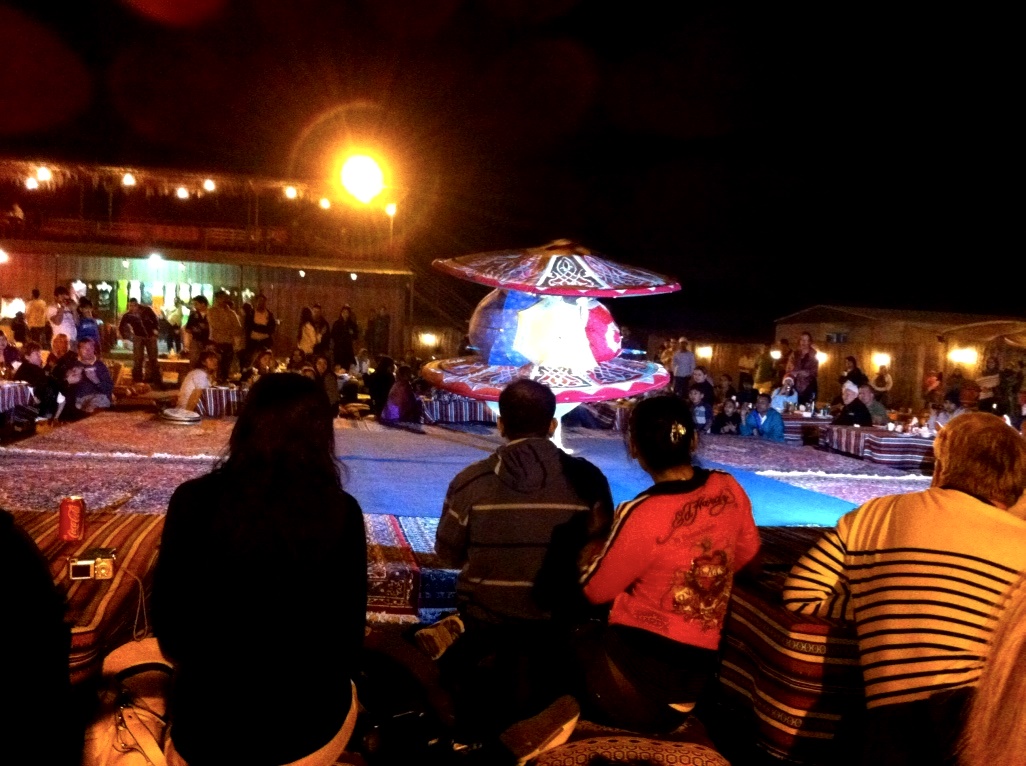 Depois do jantar, dá-se início ao show com a apresentadora do Dervixes. Você sabe o que são Dervixes? Bom, são mendigos religiosos e eram considerados como monges e rodopiavam na busca de chegar mais perto de Deus. Uma das explicações do nosso guia foi que através do movimento contínuo – o rodopio –, eles entravam em transe e com isso diziam que melhorava sua comunicação com o ser supremo. Bacana né? É incrível a cultura do oriente!