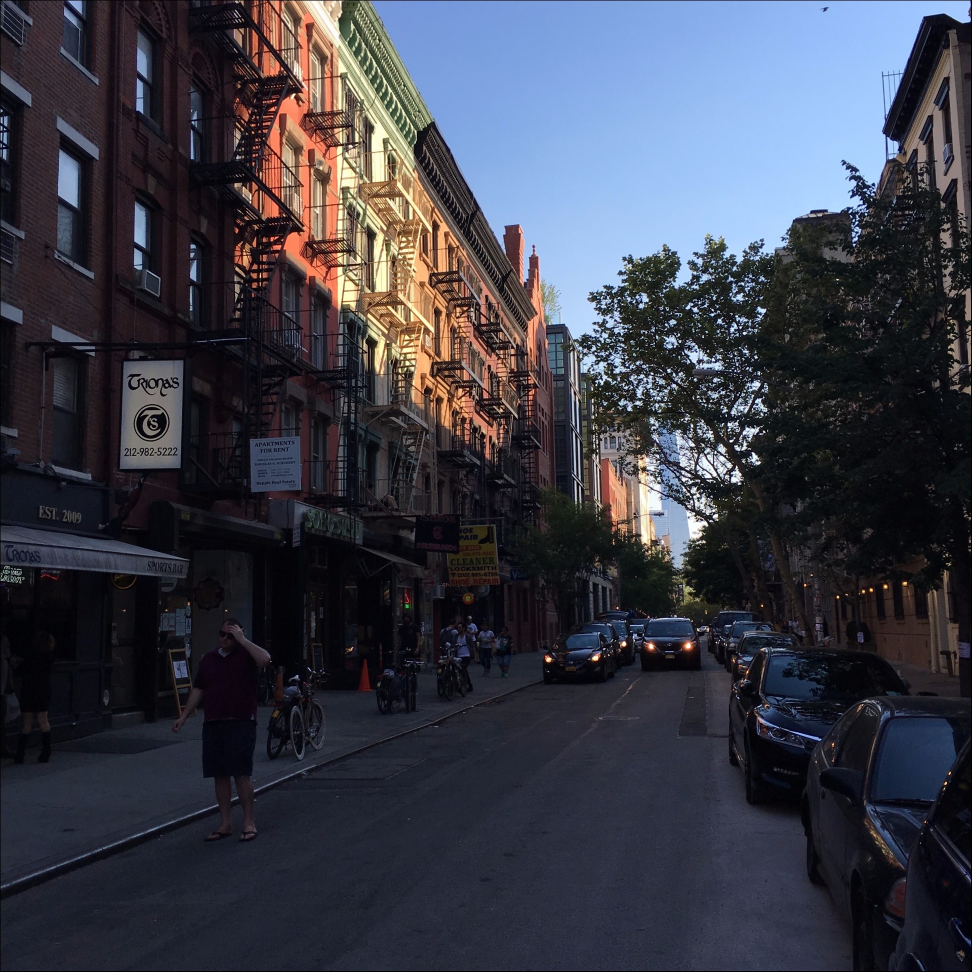 Soho: No final do século XIX, a grande indústria têxtil desenvolveu-se nesta área e por este motivo, o Soho tem uma arquitetura diferente do restante de Nova York, com aqueles edifícios industriais e escadas de incêndio do lado de fora. É uma área artística, criativa e fabulosa que é conhecida por suas boutiques agradáveis, galerias e restaurantes. Além disso, é um dos bairros mais seguros de Nova York. O Tiago e eu fomos num restaurante italiano delicioso, me perdoem, mas, nenhum de nós lembrou o nome e até tentei procurar na internet, mas os restaurantes tem uma cara muito parecida por fora, então não consegui achar... Fico devendo.