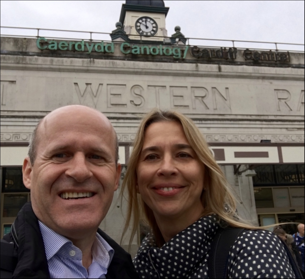 Estávamos em Londres (meu marido - Paulo e eu - Chris) e decidimos fazer uma pequena aventura: ir a Cardiff. Duas mochilas nas costas e sem mala, uma nova experiência... Fomos ate Chancery Lane e pegamos o underground até Lancaster Gate que é perto de Paddington. De lá pegamos o trem para Cardiff, no País de Gales. A viagem dura 2h30min. Foi muito estranho chegar num país novo apenas com uma mochila nas costas rs.!