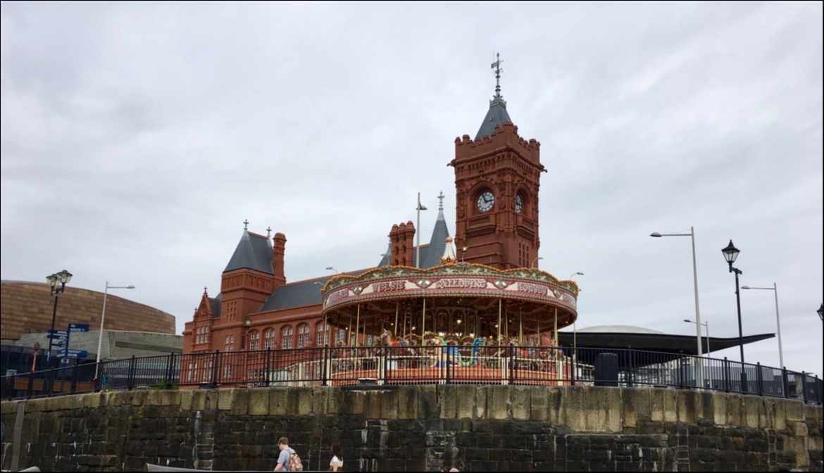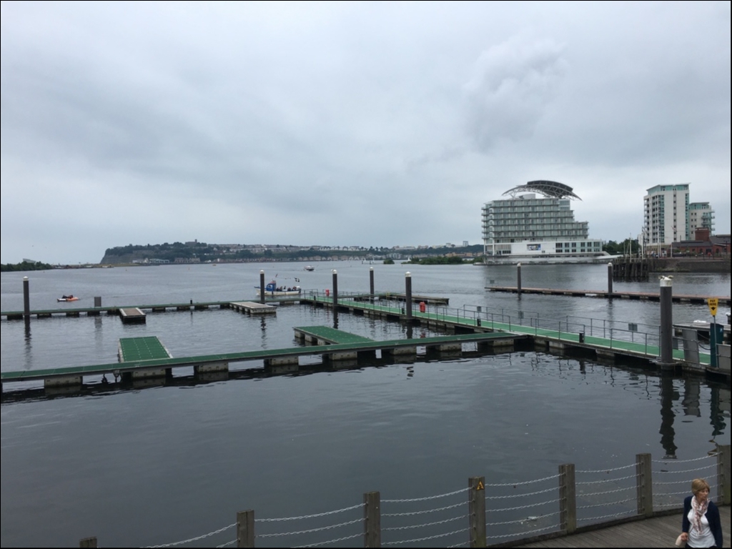 Bom, passamos no hotel para deixar as mochilas e fomos caminhar pela cidade. Caminhamos em direção ao mar e chegamos no local onde fica o centro de onvenções, a prefeitura e uma baía com um píer cheio de restaurantes. Depois, pegamos um barco para ir até o local onde fica o Castelo de Crdiff, uma construção do ano 55 (obs.: a baía é bonita, mas muito cinza).