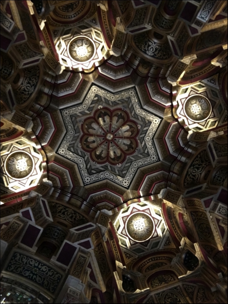 Após essa parada gastronômica, continuamos nossa caminhada rumo ao Castelo de Cardiff. Fizemos um visita pelo interior dele que vale muito a pena para conhecer as obras de arte que existem lá, como o belo teto do quarto da imperatriz. Recomendo a visita.