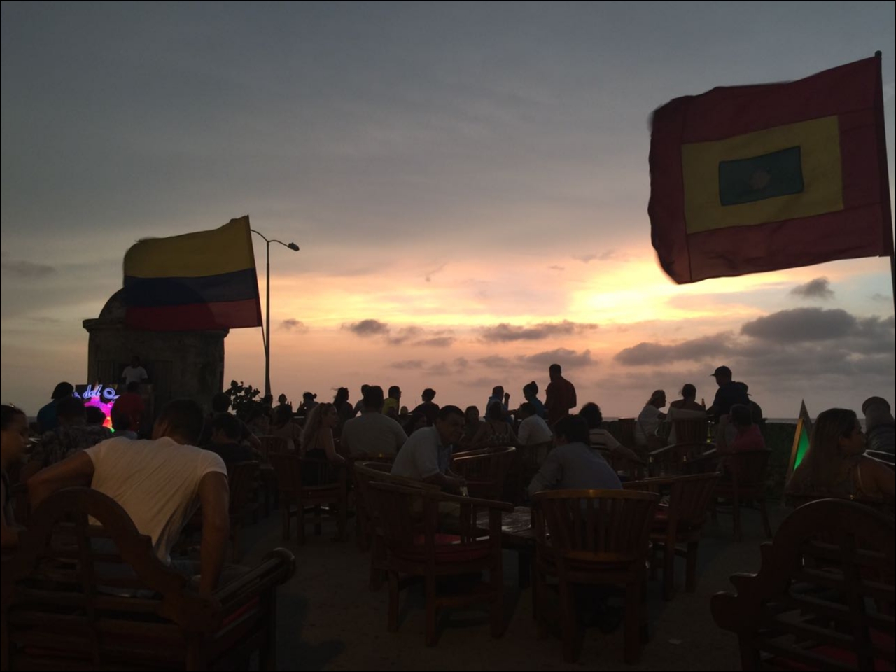 Depois de passear pela cidade antiga ou curtir as tantas opções de passeios de Cartagena na Colômbia, no final da tarde, antes do pôr do sol, o melhor lugar para se estar é no Cafe del Mar.