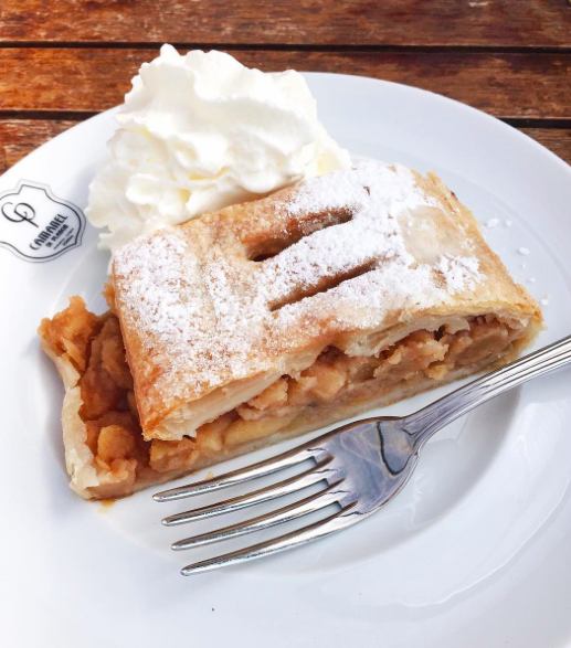 - Strudel: bom, a real origem do strudel é austríaca, mas é um doce muito comum e adorado na Alemanha. O apfelstrudel (strudel de maçã) é uma massa folhada, recheada com maçã, açúcar, canela e muitas vezes passas e migalhas de pão, servido em geral quente ou morno, podendo vir acompanhado de creme de baunilha ou sorvete. Existem também outros sabores, como de nozes, o de quark (uma espécie de queijo coalhado feito de iogurte, super comum na Alemanha) e até mesmo salgado.