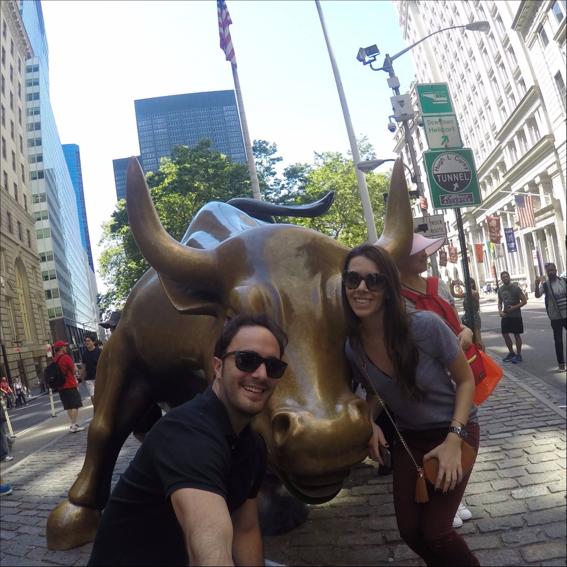 Charging Bull: essa escultura gigante de bronze representa o “bull market”, ou seja, o mercado com o preço das ações subindo de forma generalizada. Essa representação vem da ideia conhecida na bolsa como a briga entre o touro e o urso, enquanto o touro ataca fazendo um movimento com a cabeça de baixo para cima, representando a subida das ações, o urso retruca com a patada, um movimento de cima para baixo que representa a queda das ações, movimentos que acontecem o tempo inteiro no mercado. O “animal” de bronze pesa cerca de 3,5 toneladas. Segundo a crença popular, esfregar o chifre, o focinho e “as bolas” do bichão atrai sorte e dinheiro!