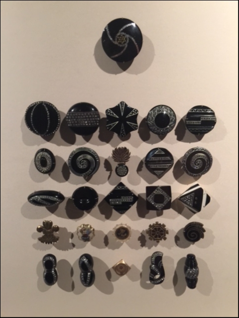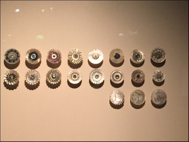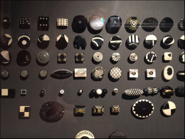 Tivemos a sorte de quando estávamos em Paris (em julho de 2015), conferir uma rica exposição de botões de várias formas e materiais, compondo saias, vestidos, camisas, botas. Também tinham os botões expostos por grupos diferentes, pintados, bordados, em madrepérola, resina, ferro, forrados. Ficamos encantadas com as referências fashionistas, uma belíssima apresentação que tivemos a oportunidade de conferir.